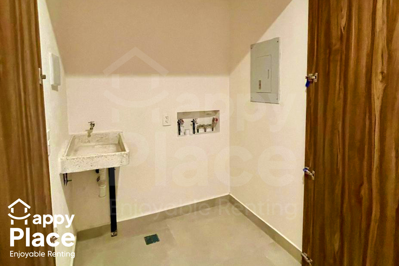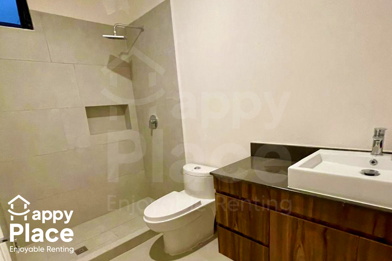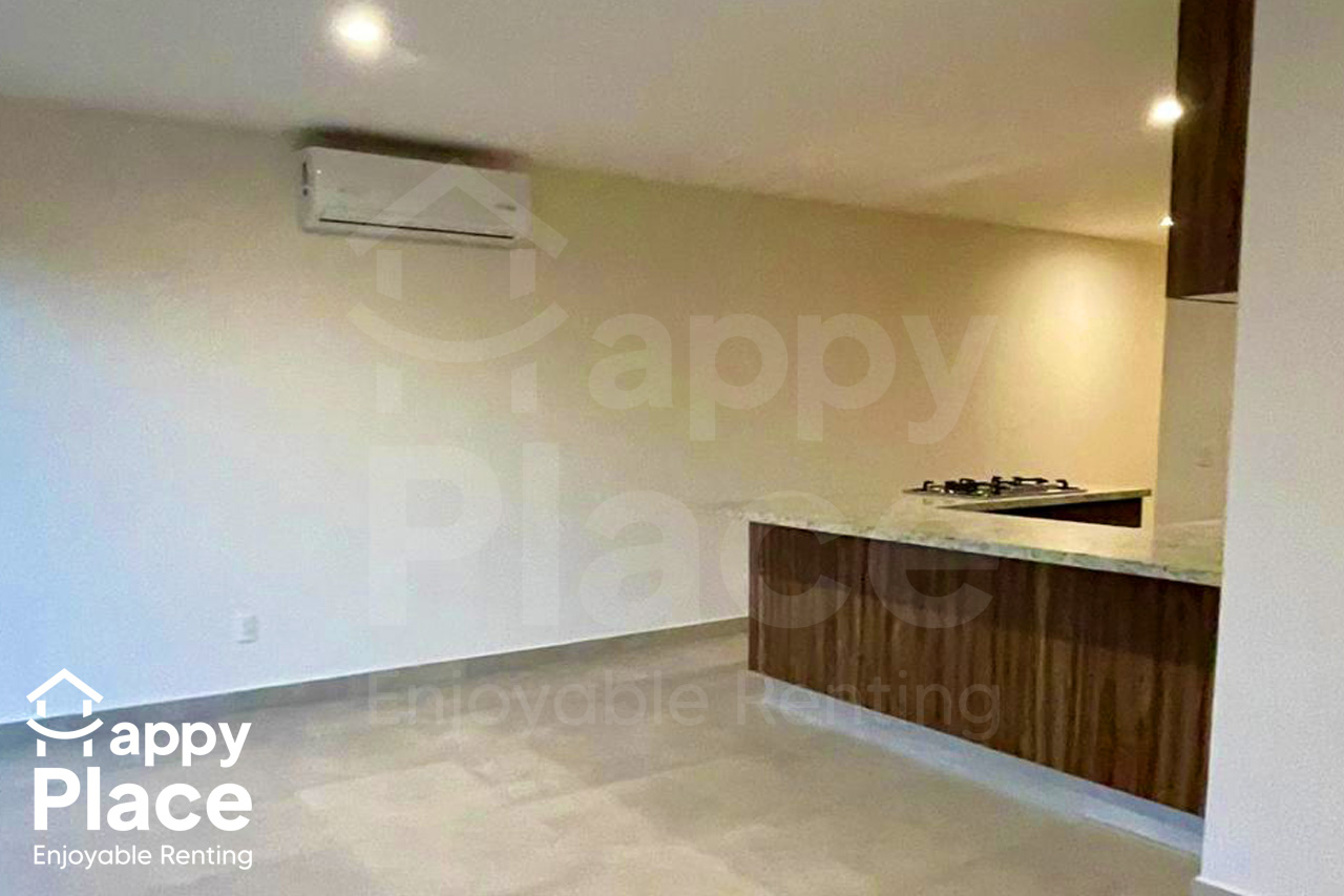 Contiene cocina integral con barra, muebles de baño, cortinas, aires acondicionados, estacionamiento para 1 auto
