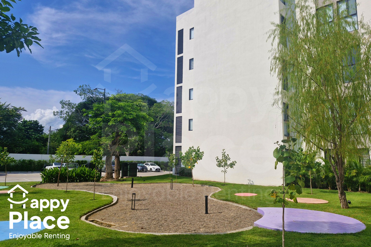 El fraccionamiento cuenta con 1 alberca con carril de nado , chapoteadero áreas verdes, estacionamiento de visitas, seguridad las 24 /7, casa club con asoleaderos, zona de juegos infantiles, parque para mascotas, ciclovía, trotapista con 400 metros lineales, gimnasio al aire libre, locales comerciales, asoleaderos húmedos, baños con regaderas, elevador, asoleaderos en terraza en 2° nivel, estacionamiento para bicis, cancha de usos múltiples